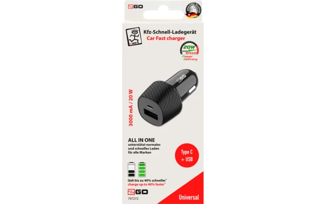- USB fast: 18 Watt (5 V/3000 mA, 9 V/2000 mA, 12 V/1500 mA)