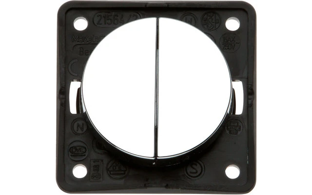 Ohne Rahmen und Einbaudose mit Zugentlastung.