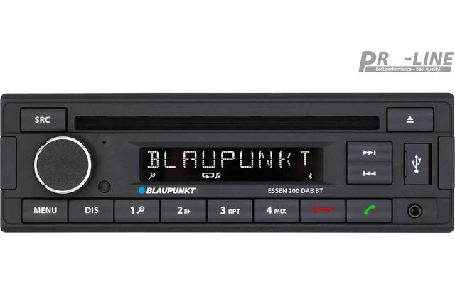 12 Volt Radio (1-DIN) mit FM/AM/RDS-Tuner (AF, PS, TA, TP & CT), DAB+ Tuner, LC-Display mit Uhrzeitanzeige, Bluetooth-Freisprechfunktion, Telefonbuch-Upload und Audio Streaming, Integriertes Mikrofon, Media Player, Audio Wiedergabe von USB