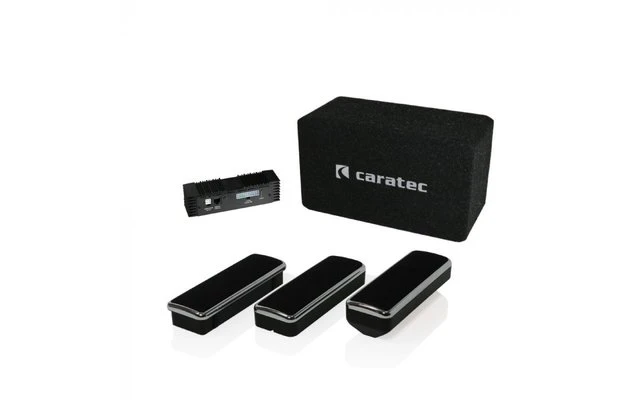 Das aktive Caratec Plug & Play Soundsystem besteht aus einem kompakten Verstärker (6-Kanal) mit integriertem Digitaler Signalprozessor (DSP) und einem Subwoofer. Der Verstärker optimiert den Klang der im Fahrzeug vorhandenen Lautsprecher und treibt den leistungsstarken Subwoofer an. Dadurch entsteht im Handumdrehen ein völlig neues und überzeugendes Klangerlebnis. Der Klang löst sich von den Lautsprechern und schwebt über dem Armaturenbrett.