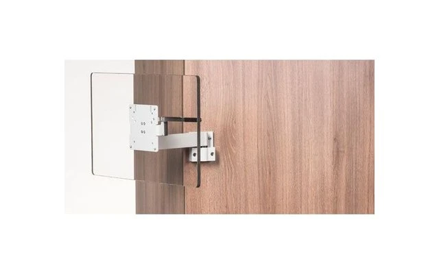Besonders leichter und stabiler Halter CFW204A aus Aluminium mit zwei Drehpunkten. Die Arretiervorrichtung sorgt dafür, dass das TV-Gerät während der Fahrt sicher befestigt ist. Optional erhältlich für Halter der A-Serie: Adapterplatte (MCC29113) mit einer 2-stufigen Neigungsfunktion (5° oder 10°), um den Betrachtungswinkel zu verbessern.