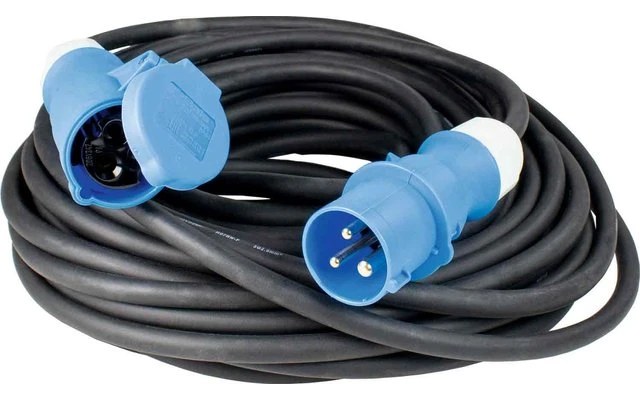 Mit CEE-Stecker und CEE-Kupplung 3-polig. Für die Verbindung vom Fahrzeug zur CEE-Kabeltrommel