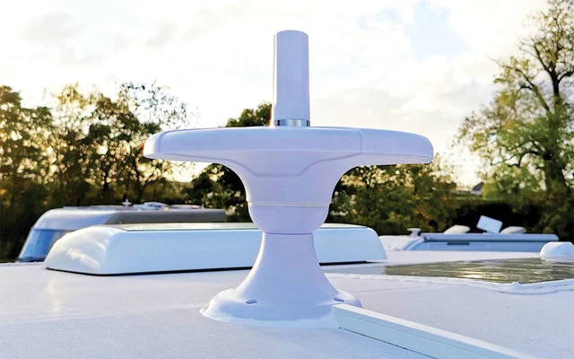 Wenn Sie Ihre alte TV‐Antenne aufrüsten möchten, müssen Sie keine neuen Löcher in das Dach Ihres Wohnwagen oder Wohnmobil bohren. Diese kombinierte DTV‐ und 4G‐Antenne ersetzt die vorhandene TV‐Antenne, verbessert das Terrestrisches TV‐Signal und fügt verstärktes 4G‐Internet hinzu. Die externe Rundstrahlantenne benötigt keine metallische Grundplatte, was bedeutet, dass sie ein hohes Leistungsniveau beibehält auch wenn sie auf einer nichtmetallischen Oberfläche wie Ihrem Wohnmobil‐ oder Wohnwagendach montiert wird. Der mitgelieferte WLAN‐Router stellt über die Dachantenne eine Verbindung zum 4G / 3GNetzwerk her und bietet einen WLAN‐Hotspot, an den Sie alle Ihre Geräte anschließen können (bis zu 10 Geräte gleichzeitig). Der LCD‐Bildschirm auf der Vorderseite zeigt den Netzwerknamen und das Kennwort sowie wichtige Informationen zur Verbindung an, einschließlich der aktuellen Geschwindigkeit, der verwendeten Daten und der Anzahl der über WLAN verbundenen Geräte. Für die meisten Benutzer müssen Sie es lediglich einschalten und mit dem auf dem Display angezeigten Kennwort eine Verbindung zum WiFi‐Netzwerk herstellen. Für fortgeschrittene Benutzer können Sie jedoch über einen Webbrowser oder die kostenlose App von Apple auf zusätzliche Einstellungen zugreifen App Store, Google Play Store für Android oder Amazon Store. Mit der magnetischen Docking‐ / Ladestation können Sie sie einfach an die Dachantenne anschließen und über Ihre 12‐V‐Versorgung aufladen, während Sie sie in einer Position halten, in der Sie das Display leicht sehen können. Die Wi‐Fi‐Router‐Einheit verfügt außerdem über einen eigenen internen Akku, dieser 6 Stunden hält, sodass Sie den Netzstecker aus der Ladehalterung ziehen und für den tragbaren Gebrauch mitnehmen können, obwohl die Leistung viel geringer ist als bei Verwendung mit der Dachhalterungsantenne. Das System funktioniert auf allen Frequenzen in Deutschland und der EU für 4G LTE mit Geschwindigkeiten von bis zu 150 Mbit / s und ist abwärtskompatibel mit 3G bis zu 42 Mbit/s und sogar 2G‐Netzen, sofern unterstützt. Es ist vollständig entsperrt und funktioniert in jedem Netzwerk.