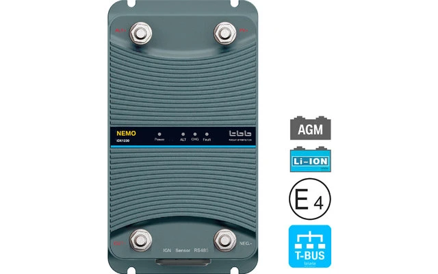 Das NEMO Booster-Ladegerät wird von der Lichtmaschine mit Strom versorgt, um während der Fahrt eine Schnellladung für die Zusatzbatterie durchzuführen. Kompatibel mit der Euro-6-Lichtmaschine, kann NEMO die Ladung mit einer stabilen Leistung mit einem intelligenten Generator aufrechterhalten, um sicherzustellen, dass die Batterie in kürzester Zeit vollständig aufgeladen wird, ohne sich Sorgen über Überladung oder Unterladung machen zu müssen.
