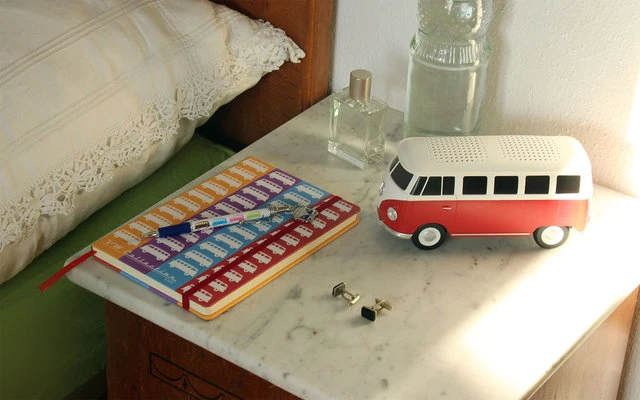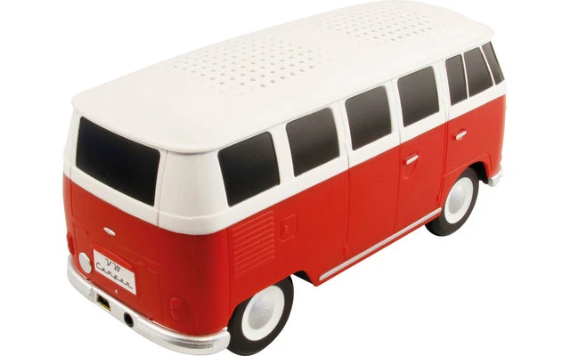 Der Lautsprecher hat die Form des VW Bulli T1 in dem legendären rot-weiß. In der Lieferung enthalten ist ein USB-Ladekabel. Verpackt ist der Bluetooth Speaker in einer schönen Geschenkverpackung.